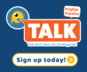 Sign up to get 8-10 text messages per month with fun activities you can do at home to help prepare little ones, ages 5 and under, for school success.
